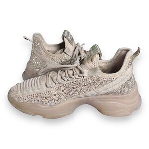 Steve Madden Maxima SM NY90 Gem Studded Beige & Gold Shoes Women’s Size 9M