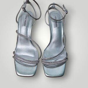 Steve Madden Meggie Silver Rhinestone Strappy Heels Size 10