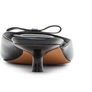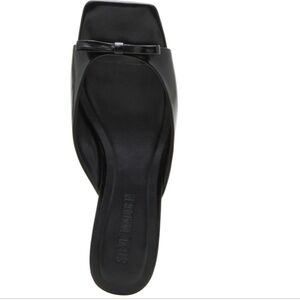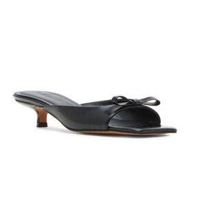Steve Madden Meme - Women's Sandals : Black Leather : The Steve Madden Meme kitten heel open-toe sandals are a chic and comfortable choice for everyday wear. With their low heel and square toe design, they offer a perfect blend of sophistication and ease, making it a versatile addition to your wardrobe. ; Canvas upper with dainty bow detail on the top. ; Synthetic rubber lining with padded comfort. ; Easy slip-on style. ; Durable synthetic rubber outsole. ; Imported. Measurements: ; Heel Height: 1 1 2 in ; Weight: 7 oz ; Product measurements were taken using size 8, width M. Please note that measurements may vary by size. | Steve Madden Meme Women's Sandals Black Leather : 6 M, Canvas/Rubber.