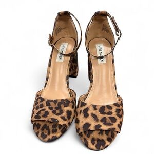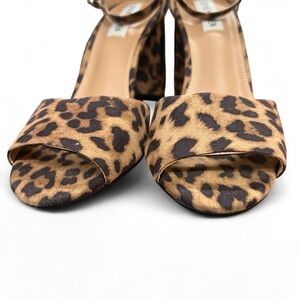Steve Madden Merlys Cheetah Beaded Floral Ankle Strap Block Heel Shoes , 7.5M
