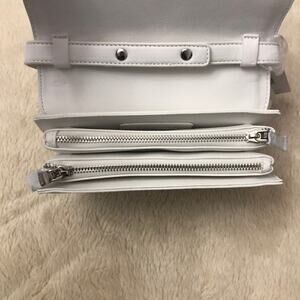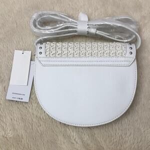 Steve Madden's curved crossbody conceals two zip compartments in a woven and studded design that's right on trend.