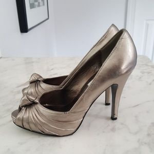 Steve Madden silver metallic heels. The color is in between silver & grey.