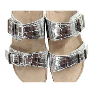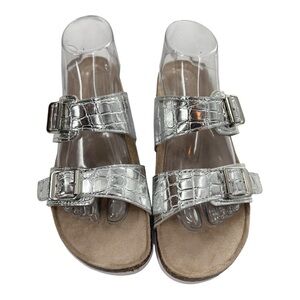 Steve Madden Metallic Silver Croc-Embossed Sandals Slip-On Size 9.5 Brand New