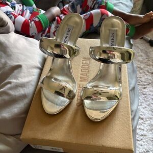 Chic metallic heels with a sleek design. Ideal for elevating any outfit. Never worn