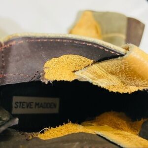 Steve Madden Midnite Women Gray Suede Beige Trim Cowboy Ankle Boots Sz 7.5M leather
