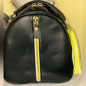 This Mini Steve Madden backpack has lime green accent color with gold hardware. It’s got adjustable straps, and lots of interior space. This bag does have small blemishes, but definitely had a lot more love to give!