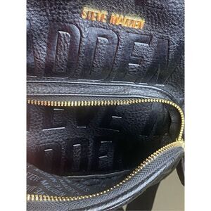 Steve Madden Mini Backpack Purse Black Embossed Leather Logo