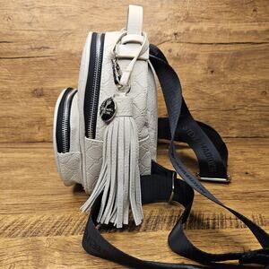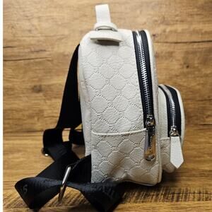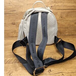 Steve Madden Mini quilted Tan Black Logo backpack purse 9in x 8in.
