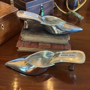 Item #20475260 From Steve Madden, the Mod Leather Mule Pumps feature: Leather upper Slip-on design Synthetic lining Synthetic outsole Approx. 2.5" heel height