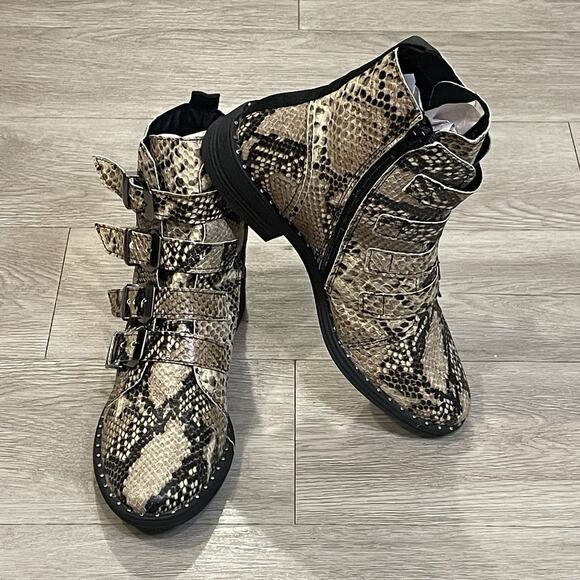 Steve Madden Moto Combat Snake Skin Boots Womens Size 9 Studded Statement