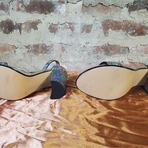 Stunning multicolor glitter heels. Features ankle strap and block heel. Perfect for a night out.