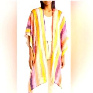 Stylish cardigan with zigzag pattern. Features vibrant colors. Ideal for layering.