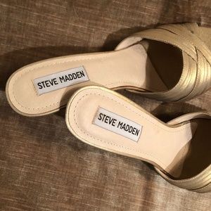 New Old Stock! Steve Madden Mystie Gold Leather Slide Sandals. Size 8.