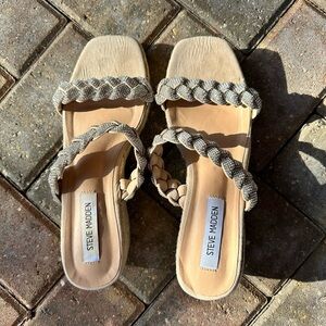 Steve Madden N1460* Womens Alreya Espadrille Bling Wedge Sandals Size 9.5