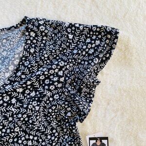 Make a statement with this black dress from Steve Madden. The dress features a beautiful white floral pattern and an empire waist that flatters any figure. The short flutter sleeves, V-neckline, and stretchy material make it perfect for a casual occasion. Constructed from a blend of polyester and spandex knit fabric, this dress is comfortable and breathable.