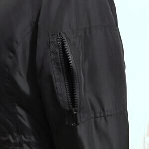 NWOT. Black Puffer Jacket for Women Size S. Zipper and snap button for closure, 2 side pockets with snap buttons to close, 1 pocket with zipper left sleeve, adjustable strap with toggles at waist and bottom hem, Non-removable hood with removable navy color faux fur, ribbed cuffs. Black bandeau and Necklace are not included. Pictures are part of description.