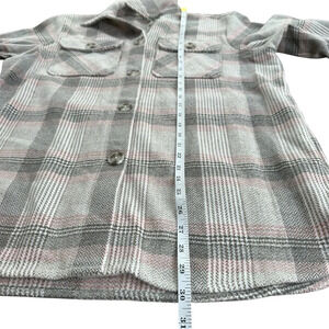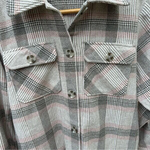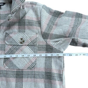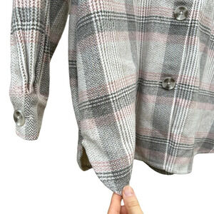 Steve Madden NWOT High Noon Cozy Gray Pink Plaid Flannel Sherpa Shacket Medium