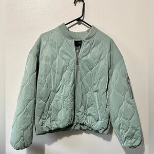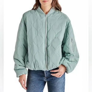 Stunning Steve Madden quilted puffer bomber jacket in mint/jade colors. Shimmer coated fabric.