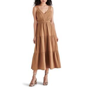 Steve Madden NWT Sleeveless Amira Tiered Cotton Midi Dress Toast XSmall New