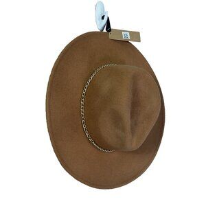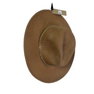 Steve Madden NWT Womens Hat Felted Wool Fedora Camel Gold Chain Boho Downtown