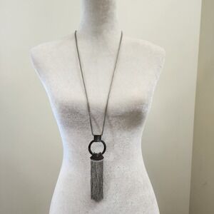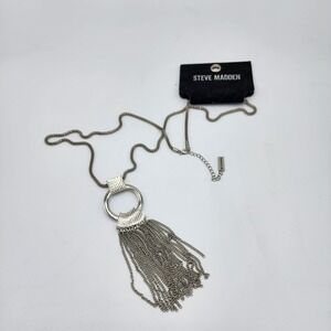 Steve Madden NWT silver tone snake chain with chain fringe pendant long necklace