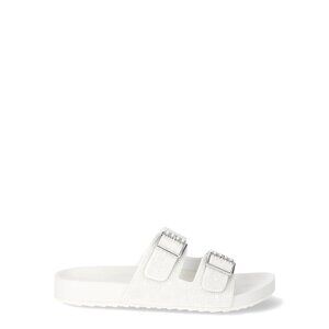 Madden NYC Women's White Bling Footbed Sandal Slides Just like Birkenstock Arizona and just as comfortable New Size 8 Material: Polyester With Bling Upper; TPR Sole Feature: Comfort PVC Footbed Fabric Care: Wipe Clean Country Of Origin: China Shoe Closure: Slip On I have many pairs of Birkenstocks And these are just as comfortable with bling for a quarter of the price Great for summer or Wear with darling socks ~~~~~~~~~~~~~~~~~~~~~~~~ Detailed Photos Precise Descriptions I usually ship the same day Measurements and Dimensions given so you don’t have inquire I take pride in my online boutique I want it to be wonderful experience for YOU the customer I truly want my customers happy Please don’t hesitate with any questions before purchasing Thank you for taking the time to look Have fun and as always Happy Buying!
