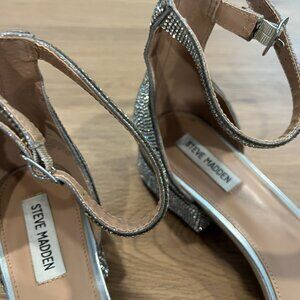 Steve Madden Nava Rhinestone Square Toe Ankle Strap Sandals Heels Shoes Size 11M