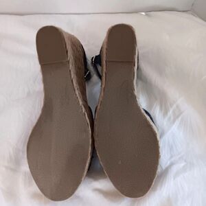 Steve Madden Navy and Tan SZ 9.5 Wedge Sandals Leather Lining Espadrille Style
