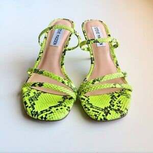 Steve Madden Neon Green Snakeskin Strappy Mule Kitten Heels / Sandals / Shoes