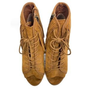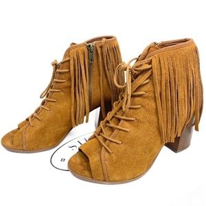 Steve Madden Newporte Fringe Western Ankle Bootie Chestnut Suede Size 6 Boho