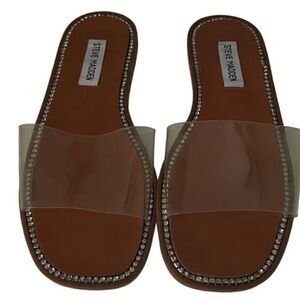 Steve Madden Nolo Clear Band Rhinestones Slip On Sandals Women's Size 8.5