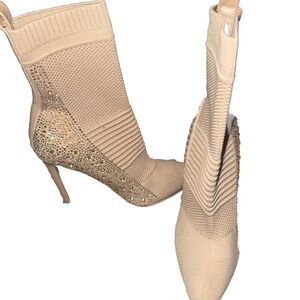 Steve Madden Nude Sock Knit Ankle Heels Sz 6 M Bejeweled MAXWELLE Booties EUC