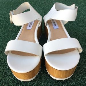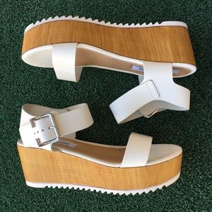 Super cute ultra chic classic leather platform sandal with wooden heel and rubber tread sole