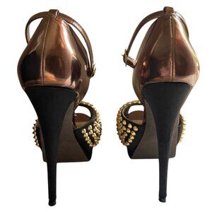Steve Madden Obstcl-S Black Bronze Studded Peep Toe Heels Gold Spikes Womens 7M