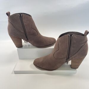 Steve Madden Ohio Western Ankle Booties Fringe Taupe Suede Heeled Women's 8.5