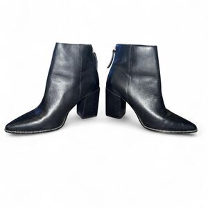 Steve Madden Olga Women’s Size 8 Black Leather Ankle Boots Studded Pointed Toe Block Heel