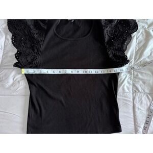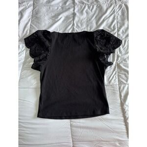 Steve Madden Olina Womens Top Medium Black Polyester Flutter Sleeve Pullover