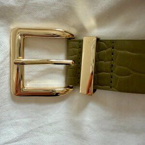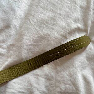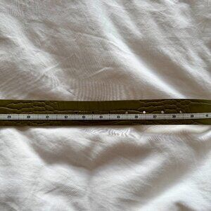 42" from buckle to end: 32.5" to first hole and 38.5" to last hole
