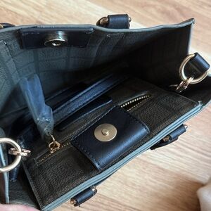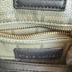 Chic messenger bag by Steve Madden. Olive body with bold black straps. Ideal for daily use.