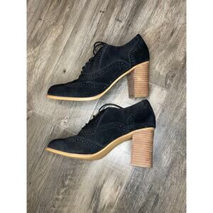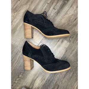 Steve Madden Omyra Black Suede Heeled Oxfords Shoes Witchy Boho Whimsygoth Sz 10
