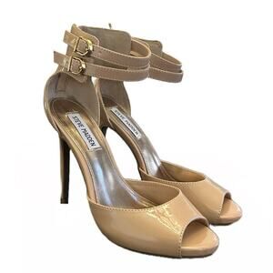 Steve Madden Open Toe Double Buckle Ankle Strap 5" Pump Shoe Size 7.5