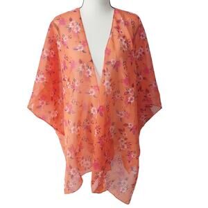 Steve Madden Orange Floral Packable Sun hat and Ruana Wrap set