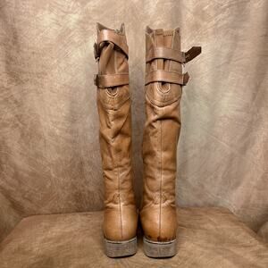 Y2K Steve Madden Ortis Calf High Leather Tan Buckle Walking Boots