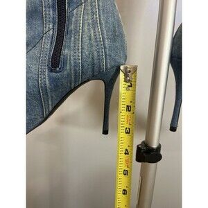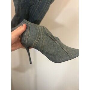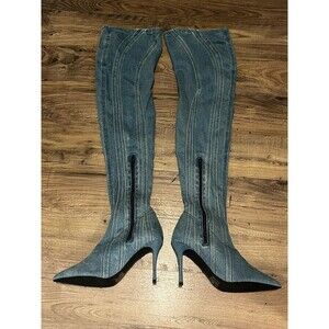 The Steve Madden Over The Knee Blue Jean Groovy Boots in size 7.5 for women are a stylish and trendy choice for anyone looking to make a statement. These boots feature a pointed toe, high stiletto heel, and are made of denim fabric in a striking blue color. The over-the-knee style adds a touch of sophistication to any outfit, making them a versatile and fashionable option for any wardrobe. With the trusted Steve Madden brand name, you can be sure you're getting a quality and stylish piece of footwear that will stand out in any crowd.
