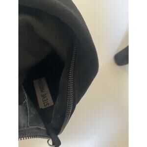 Chic and versatile Steve Madden over-the-knee boots in classic black. Made with a soft textile upper that mimics suede, featuring a side zipper for easy on/off and a sturdy block heel for style and comfort. Perfect for fall and winter outfits, pairing effortlessly with dresses, skirts, or skinny jeans.