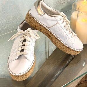 Steve Madden, PACE sneaker w/ espadrille platform, White leather w/Rose Gold