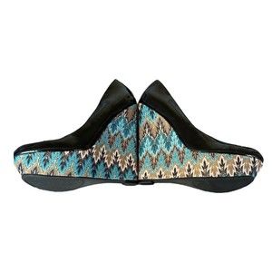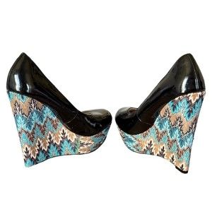 Steve Madden Wedge Size 8.5 M Black Patent Leather Print Wedge P-Elli Blue.
