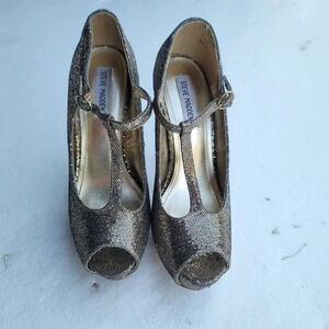 Steve Madden P-REVAA Gold Glitter Stiletto High Heels Adjustable Buckle Strap 9