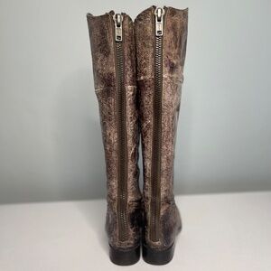 Steve Madden P-ROVERR Knee High Brown Distress Crackle Leather Zip Boot Size 7