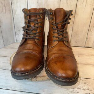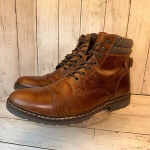 Steve Madden P-Werker Men's Boots Size 10 Lace-Up Side Zip Knit Cuff Leather